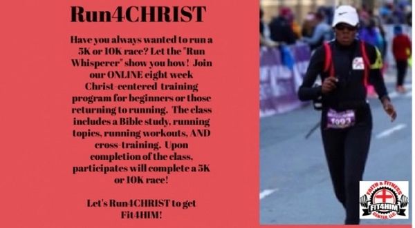 Have you always wanted to run in a 5K race? Let the "Run Whisperer" show you how! Join our online and in-person Christ-centered 5K training program for beginners or those returning to running. The class includes a Bible study, running topics, running workouts, AND cross-training. Upon completion of the class, participates will graduate by completing a 5K race! Let's Run4CHRIST to get Fit4HIM!
